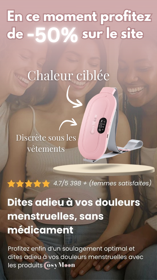 La ceinture chauffante CosyMoon soulage naturellement les crampes menstruelles grâce à une chaleur apaisante et constante.